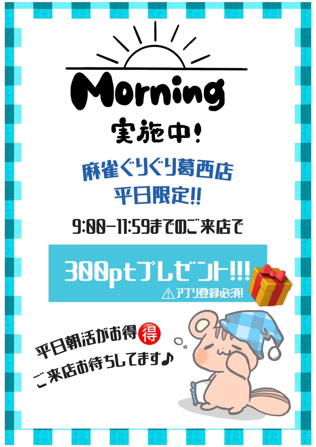 麻雀ぐりぐり 葛西店東京都 マージャングリグリカサイテン 東京都 葛西駅 徒歩1分 四麻、三麻、セット、フリー 電話する03-6808-9292 地図 店舗トップ ルール 写真/動画 イベント 求人 クーポン プロ イチオシ ランキング クチコミ イベント詳細 スポットライトイベント イベント ✨2026年2月のゲスト来店予定✨ 固定イベント 2月も豪華ゲストが来店✨ 2/4(水)日本プロ麻雀連盟 大久保朋美 16時~22時 2/12(木)ザンリーグ 涼宮麻由 15時~21時 2/25(水)RMU 増田悠理 16時~22時 皆様のご来店お待ちしております! イベント 【平日限定】ぐりぐりの朝はお得◎ 固定イベント ぐりぐり葛西店は【平日午前中】の来店がお得◎ なんとアプリに【300pt】貯まります! ぐりぐりで朝活、ポイ活を始めてみては!? さらに読み込む... 次の6件〜2件/全2件の検索 お店のコトを友達に教える Facebook X(旧Twitter) Line Mail お店を評価する 閉店・休業・移転・情報違い報告 クチコミ投稿 報告内容詳細※必須 閉店 休業 移転 情報違い 送信する