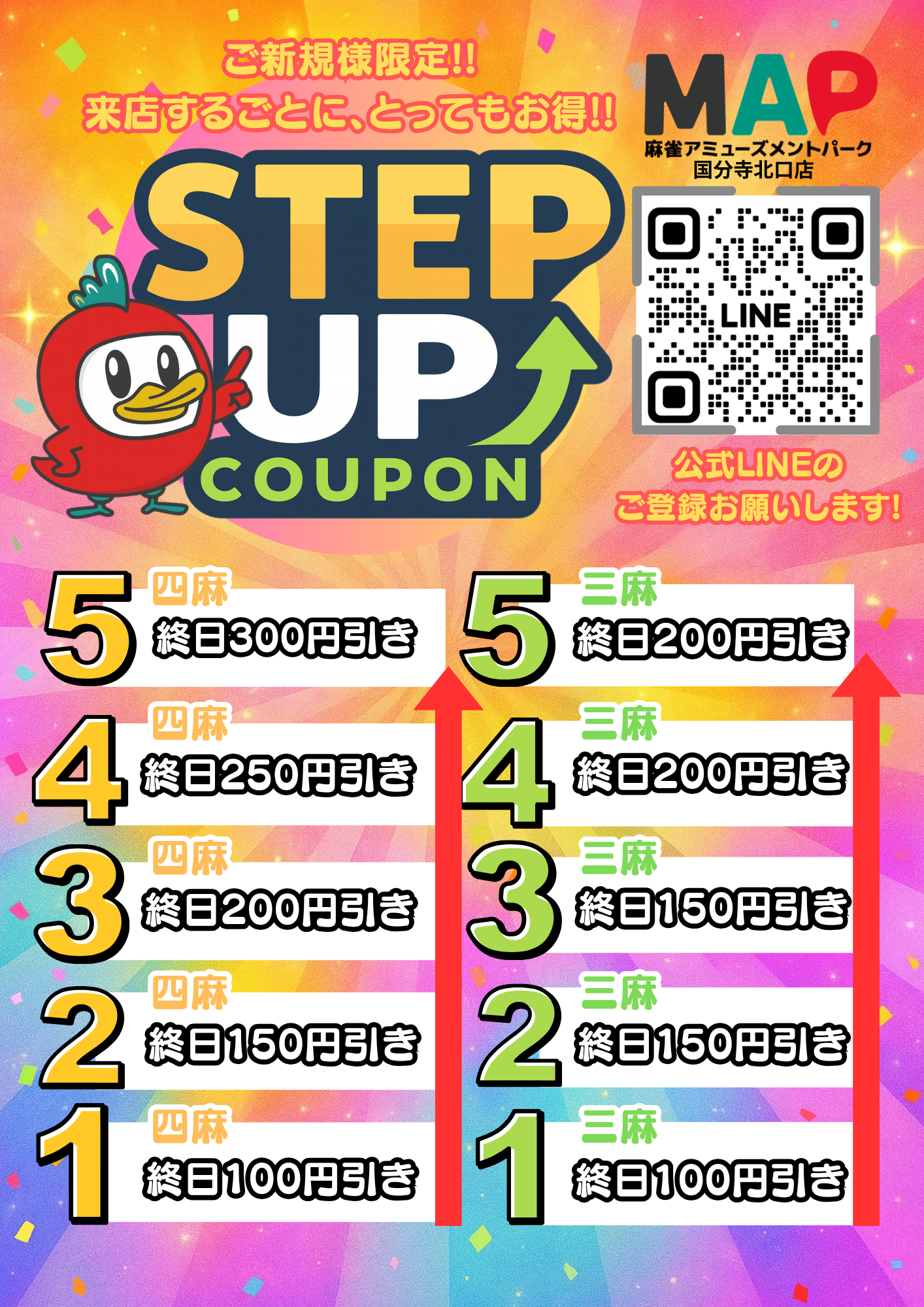 まぁじゃんMAP 国分寺店東京都 マァジャンマップ コクブンジテン 東京都 国分寺駅 徒歩2分 四麻、フリー、セット、三麻 電話する042-328-5030 地図 店舗トップ ルール 写真/動画 イベント 求人 クーポン プロ イチオシ ランキング クチコミ イベント詳細 イベント ☆ご新規様キャンペーン☆ 固定イベント フリーのご新規様に初来店から5回目の来店まで 段階的にキャッシュバックの増えるSTEP UPクーポンをプレゼント!! この機会にぜひご来店お待ちしております!! ※当店の公式LINEの登録をお願いしております。 イベント ✨スタッフ絶賛募集中🎵時給1170円スタート💖 固定イベント ⭐️「雀荘で働いてみたい❗️」「もっと麻雀強くなりたいけどお金がない…」「お酒は苦手だけど…おしゃべり大好き❗️」「麻雀覚えたい❗️」そんな方をMAP国分寺店は募集しています🎵 ⭐️アルバイトは週1からOK🎵ガッツリ働きたい方は週6勤務も可能です❗️ ⭐️麻雀まったくわからない女性スタッフも募集中🎵(おしゃべり大好きな方には本当に向いてる職場ですよ🎵) 詳しくはコチラ! さらに読み込む... 次の6件〜2件/全2件の検索 お店のコトを友達に教える Facebook X(旧Twitter) Line Mail お店を評価する 閉店・休業・移転・情報違い報告 クチコミ投稿 報告内容詳細※必須 閉店 休業 移転 情報違い 送信する