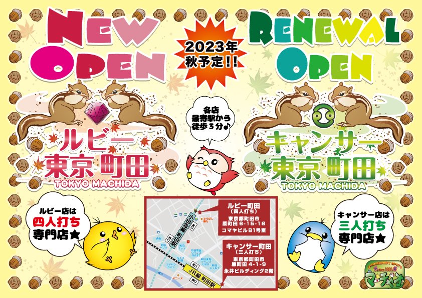 マーチャオ ルビー 町田店東京都 マーチャオルビーマチダテン 東京都 町田駅 徒歩5分 四麻、セット、フリー 電話する042-851-8679 地図 店舗トップ ルール 写真/動画 イベント 求人 クーポン プロ イチオシ ランキング クチコミ 写真一覧 動画一覧 お店のコトを友達に教える Facebook X(旧Twitter) Line Mail お店を評価する 閉店・休業・移転・情報違い報告 クチコミ投稿 報告内容詳細※必須 閉店 休業 移転 情報違い 送信する