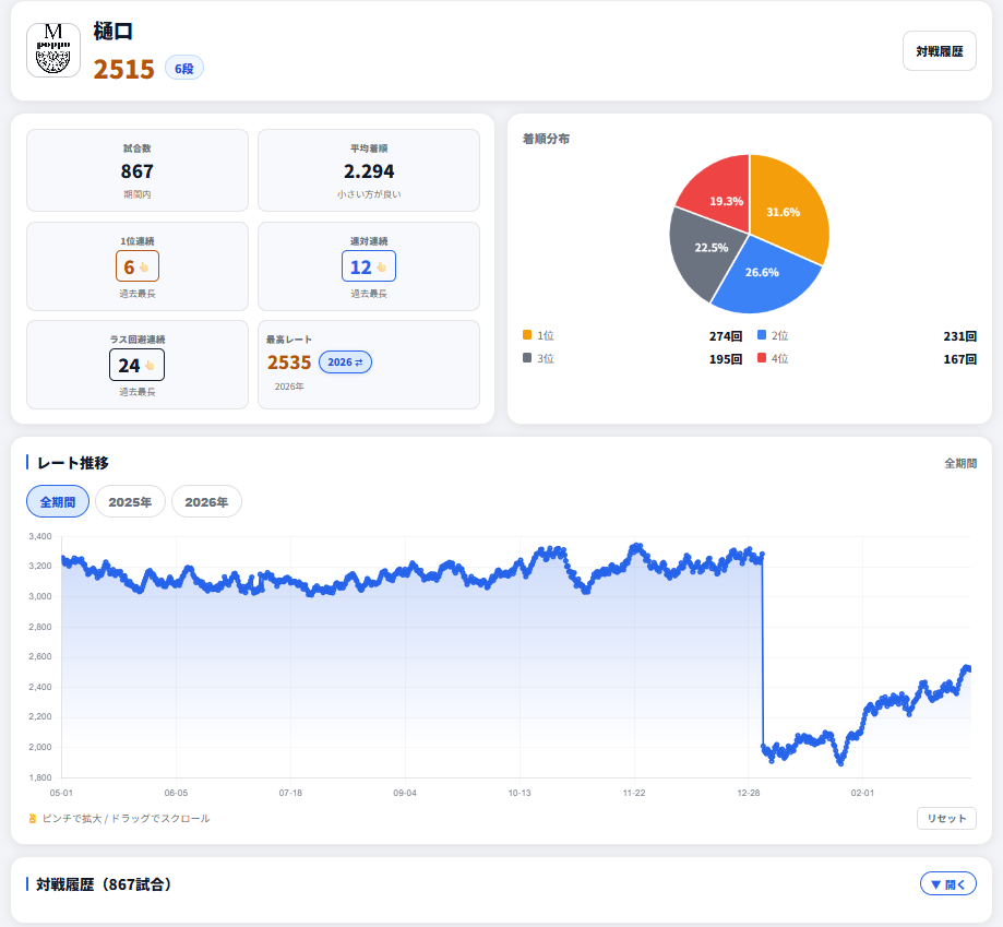 M-poppo大分県 エムポッポ 大分県 高城駅 2.45km 四麻、ノーレート、麻雀教室、セット、フリー 電話する090-7397-5200 地図 店舗トップ ルール 写真/動画 イベント 求人 クーポン プロ イチオシ ランキング クチコミ イチオシ詳細 スポットライトイチオシ イチオシ 1 大分初☆完全ノーレートフリー雀荘♬ 当店は成績管理システムを入れています。平均順位、レート推移、着順分布など、ネット麻雀さながらの詳細な成績データを記録しています! 店内はもちろん、スマホでいつでも成績が確認出来ます! イチオシ 2 従来の雀荘のイメージとは全然違います(*'ω'*) 美容室や、バーのようなおしゃれで洗練された雰囲気☆ もちろんオープンしたてでピカピカ・清潔なので女性のお客様も安心してお越しください! イチオシ 3 大分初<魂天>によるコーチングのサービス♪ オンライン麻雀ゲーム 雀魂の最上段位 魂天の店長が優しくお教えします♪ お店のコトを友達に教える Facebook X(旧Twitter) Line Mail お店を評価する 閉店・休業・移転・情報違い報告 クチコミ投稿 報告内容詳細※必須 閉店 休業 移転 情報違い 送信する