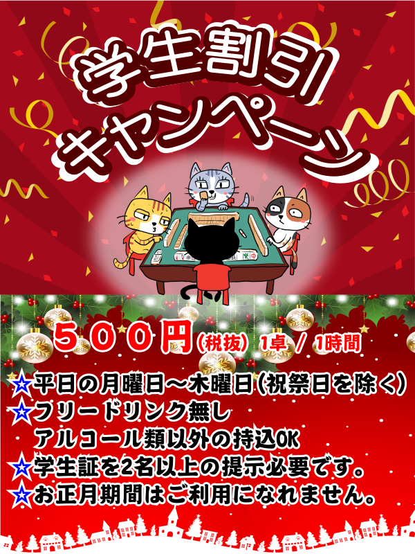 麻雀 JAM(ジャム) 梅田店大阪府 マージャン ジャム ウメダテン 大阪府 梅田駅 徒歩4分 セット、フリー 電話する06-6362-5511 地図 店舗トップ ルール 写真/動画 イベント 求人 クーポン プロ イチオシ ランキング クチコミ イチオシ詳細 スポットライトイチオシ イチオシ 1 学生割引キャンペーン 500円(税抜) 1卓 / 1時間 ※平日の月曜~木曜(祝祭日を除く) ※フリードリンク無し アルコール類以外の持込OK! ※学生証を2名以上の提示が必要です。 イチオシ 2 ゲーム代値下げ‼ 【四人打ち】 ゲーム代400円⇒350円 値下げいたしました♡ 気軽に楽しんでください。 お店のコトを友達に教える Facebook X(旧Twitter) Line Mail お店を評価する 閉店・休業・移転・情報違い報告 クチコミ投稿 報告内容詳細※必須 閉店 休業 移転 情報違い 送信する