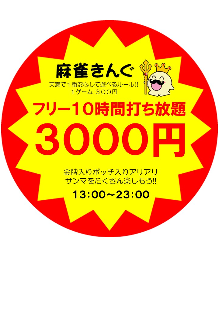 麻雀きんぐ 大阪天満三人打店大阪府 マージャンキング テンマオーチャンテン 大阪府 天満駅 徒歩1分 ※無料駐車場あり!! フリー、セット、三麻 電話する06-6354-3477 地図 店舗トップ ルール 写真/動画 イベント 求人 クーポン プロ イチオシ ランキング クチコミ 総合 麻雀きんぐ 大阪天満三人打店 3.0 5 5 ? 点数について 5件 詳細 雀荘クチコミの点数概要 クチコミの点数は、総合点数を中心に、全部で11項目あります。 12項目は「雀荘の営業形態についての項目」と「その他の環境についての項目」の2つにわかれます。 総合スコア (計11項目) 営業形態点数 (6項目) 雀荘の営業形態についての点数 フリー セット 健康麻雀 麻雀教室 ノーレート 三麻 その他の環境点数 (5項目) 雀荘の設備、その他の環境についての点数 設備 接客 居心地 CP(コストパフォーマンス)・清潔感 ※麻雀王国雀荘検索のクチコミの点数は、当社独自の基準に基づく評価であり、雀荘の価値を何ら保証するものではあ りません。あくまでの一つの参考としてご活用ください。 雀荘クチコミ点数の算出方法要 クチコミの点数は、「ユーザー評価」に独自のアルゴリズムで掛け合わせて算出しております。 麻雀王国では、日々信頼性の高い点数を追及し、微調整を行っております。 ユーザー評価 個人が付けた点数 (雰囲気、感性、感覚、状況、主観など) フリー3.0 セット3.0 健康麻雀3.0 麻雀教室3.0 ノーレート3.0 三麻3.0 設備 3.0 | 接客 3.0 | 居心地 3.0 | CP(コストパフォーマンス) 3.0 | 清潔感 3.0 フリー ¥300/般 セット ¥1,100/般 長期契約安心店舗 全国* 大阪府4位 【大阪府大阪市北区・天満駅】麻雀きんぐ 大阪天満三人打店は、フリー・セット・三麻が楽しめる雀荘です。 フリー打ち放題のお店!! 大阪天満で1番安心して遊べるルール!!「フリー雀荘がはじめての方」「普段は4人打しかしない方」におすすめ★ フリー・10時間打ち放題 ➡ 3000円 ※13:00~23:00 貸卓・12時間打ち放題 ➡ 6900円 ※12:00~24:00 ※さらに平日は1000円OFF! ※無料駐車場あり!! 続きを見る 閉じる お店のイチオシポイント イチオシ 1 フリー10時間打ち放題3000円!! 通常1ゲーム300円 のフリーが 10時間3000円 で 打ち放題 !! ➡13:00~23:00の間は 11ゲーム目以降のゲームが全て無料です!! 無料駐車場 もご用意しておりますので、お気軽にお問い合わせ下さい!! イチオシ 2 貸卓12時間打ち放題6900円!! 天満で1番お得な打ち放題プラン!! 12時間打ち放題➡ 6900円 ※さらに平日は1000円OFF! 12:00~24:00の12時間が対象です★他の時間は1卓1時間1100円でご利用いただけます! 通常12:00開店ですが、前日までにご予約いただければ、朝9:00 からのご利用もOK!(打ち放題は12:00からが対象) ご予約お待ちしております! ※無料駐車場あり!!(1卓につきお車1台OK) ☎ 06-6354-3477 お店のコトを友達に教える Facebook X(旧Twitter) Line Mail お店を評価する 閉店・休業・移転・情報違い報告 クチコミ投稿 報告内容詳細※必須 閉店 休業 移転 情報違い 送信する 最新情報 2025年8月1日(金) イベント フリー10時間打ち放題3000円!! 通常1ゲーム300円 のフリーが 10時間3000円 で 打ち放題 !! ➡13:00~23:00の間は 11ゲーム目以降のゲームが全て無料 無料駐車場 もご用意しておりますので、お気軽にお問い合わせ下さい!! 「ネット予約」&「チェックイン」で 来店人数×100Gもらえる! ログイン ご予約情報入力 来店日※ 2013年12月31日(火) 卓数※ 12345678910卓 予定開始※ 1:00 2:00 3:00 4:00 5:00 6:00 7:00 8:00 9:00 10:00 11:00 12:00 13:00 14:00 15:00 16:00 17:00 18:00 19:00 20:00 21:00 22:00 23:00 24:00 予定終了※ 1:00 2:00 3:00 4:00 5:00 6:00 7:00 8:00 9:00 10:00 11:00 12:00 13:00 14:00 15:00 16:00 17:00 18:00 19:00 20:00 21:00 22:00 23:00 24:00 お名前※ 携帯TEL※ メール※ ルール※ 四麻 三麻 点数※ 25000点 30000点 赤枚数※ 赤5マン01234 赤5ピン01234 赤5ソー01234 その他 チップ 焼鳥 備考 予約する クチコミ 投稿する ユーザーが選ぶピックアップ!クチコミ 麻雀きんぐ 大阪天満三人打店 大阪府 天満駅 また行きたい! 2022/11/11 (2022/11訪問) R (1) さんのクチコミ 30代・男性・大阪府 総合 5.0 良い点 店内が綺麗でスタッフの方も親切! 初心者も女性の方も入りやすい雰囲気のお店です。 打ち放題もあるので長く遊びたい人は特におすすめ 気になる点 麻雀きんぐ 大阪天満三人打店 大阪府 天満駅 フリーはトップ賞が別で200円かかるが、安い。セットは学生や女性客でなければかなり安いのではないか。 2023/07/19 (2023/06訪問) ゲスト さんのクチコミ 総合 4.0 麻雀きんぐ 大阪天満三人打店 大阪府 天満駅 セットもフリーも楽しめるお店でした✨ 2022/11/24 (2022/11訪問) ゲスト さんのクチコミ 総合 5.0 お店の情報詳細 店名 麻雀きんぐ 大阪天満三人打店 住所 〒530-0041 [地図] 大阪府大阪市北区天神橋4-8-6 天神橋サンプラザビル3F 電話 06-6354-3477 交通手段 大阪環状線 天満駅 徒歩1分 ※無料駐車場あり!! 大阪市営地下鉄堺筋線 扇町駅 75m JR関西本線(名古屋~亀山) 長島駅 116.94km 営業時間 12:00~24:00 [★貸卓 12:00~24:00 ※貸卓はご予約の場合、朝8:00からご利用OK!! ※無料駐車場あり!!] 13:00~24:00 [