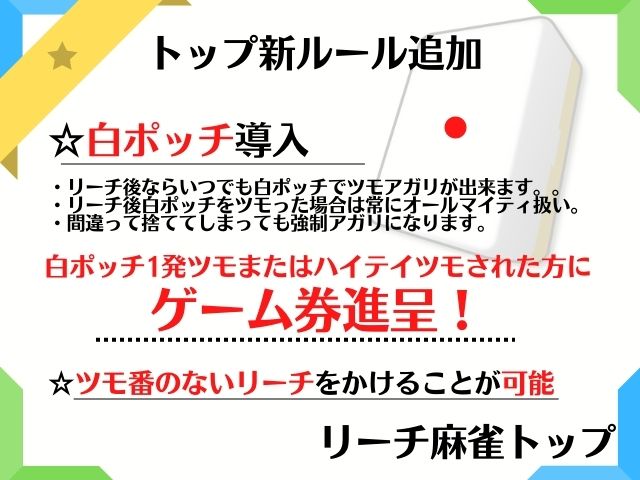 麻雀トップ千葉県 マージャントップ 千葉県 稲毛海岸駅 徒歩1分 セット、フリー 電話する043-277-8745 地図 店舗トップ ルール 写真/動画 イベント 求人 クーポン プロ イチオシ ランキング クチコミ 総合 麻雀トップ - 5 0 ? 点数について 0件 詳細 雀荘クチコミの点数概要 クチコミの点数は、総合点数を中心に、全部で11項目あります。 12項目は「雀荘の営業形態についての項目」と「その他の環境についての項目」の2つにわかれます。 総合スコア (計11項目) 営業形態点数 (6項目) 雀荘の営業形態についての点数 フリー セット 健康麻雀 麻雀教室 ノーレート 三麻 その他の環境点数 (5項目) 雀荘の設備、その他の環境についての点数 設備 接客 居心地 CP(コストパフォーマンス)・清潔感 ※麻雀王国雀荘検索のクチコミの点数は、当社独自の基準に基づく評価であり、雀荘の価値を何ら保証するものではあ りません。あくまでの一つの参考としてご活用ください。 雀荘クチコミ点数の算出方法要 クチコミの点数は、「ユーザー評価」に独自のアルゴリズムで掛け合わせて算出しております。 麻雀王国では、日々信頼性の高い点数を追及し、微調整を行っております。 ユーザー評価 個人が付けた点数 (雰囲気、感性、感覚、状況、主観など) フリー- セット- 健康麻雀- 麻雀教室- ノーレート- 三麻- 設備 - | 接客 - | 居心地 - | CP(コストパフォーマンス) - | 清潔感 - フリー ¥600/般 セット ¥1,200/般 ¥800/学 長期契約安心店舗 全国* 千葉県* 【千葉県千葉市美浜区・稲毛海岸駅】麻雀トップは、セット・フリーが楽しめる雀荘です。 現在1人マスターで営業中の為、 ご来店の際はお電話にて店内状況の確認をして頂けますと幸いです。 京葉線稲毛海岸駅から徒歩1分! 駅近でご利用頂きやすいお店です♪ セット様へ 当店一人マスターの為、 飲食、お飲み物持ち込み自由! アルコールも可能です。 (隣にセブンイレブン有り) フリー・セットご新規様のご利用お待ちしております!! リーチ後オールマイティ白ポッチ採用! 白ポッチ1発ツモ、ハイテイツモでゲーム券贈呈!!! 皆様の御来店お待ちしております(^^) 続きを見る 閉じる お店のコトを友達に教える Facebook X(旧Twitter) Line Mail お店を評価する 閉店・休業・移転・情報違い報告 クチコミ投稿 報告内容詳細※必須 閉店 休業 移転 情報違い 送信する 最新情報 2022年7月22日(金) イベント 【五輪は平和の祭典】金色の八萬始めました 【当店は万両派より、おかわり派多数】当店は優しい常連達に愛される「場末雀荘」です!! 「ネット予約」&「チェックイン」で 来店人数×100Gもらえる! ログイン ご予約情報入力 来店日※ 2013年12月31日(火) 卓数※ 12345678910卓 予定開始※ 1:00 2:00 3:00 4:00 5:00 6:00 7:00 8:00 9:00 10:00 11:00 12:00 13:00 14:00 15:00 16:00 17:00 18:00 19:00 20:00 21:00 22:00 23:00 24:00 予定終了※ 1:00 2:00 3:00 4:00 5:00 6:00 7:00 8:00 9:00 10:00 11:00 12:00 13:00 14:00 15:00 16:00 17:00 18:00 19:00 20:00 21:00 22:00 23:00 24:00 お名前※ 携帯TEL※ メール※ ルール※ 四麻 三麻 点数※ 25000点 30000点 赤枚数※ 赤5マン01234 赤5ピン01234 赤5ソー01234 その他 チップ 焼鳥 備考 予約する クチコミ 投稿する お店の情報詳細 店名 麻雀トップ 住所 〒261-0004 [地図] 千葉県千葉市美浜区高洲1-22-10 金谷ビル3F 電話 043-277-8745 交通手段 JR京葉線 稲毛海岸駅 徒歩1分 京葉線稲毛海岸駅から徒歩1分! 営業時間 10:00~24:00 定休日 年中無休 営業内容 セット、フリー ゲーム代(フリー) ¥600/般 [東南戦] ゲーム代(セット) ¥1,200/般 ¥800/学 [1卓1時間あたり] ゲーム代(健康麻雀) ゲーム代(麻雀教室) その他の料金 オープン日 お店のサービス・システム・設備 総卓数 6卓 卓種 点数表示付全自動卓×6全自動配牌卓×6 サービス フリードリンク、自動配牌卓、禁煙、駐車場 システム・設備 ウォシュレット 備考 関連エリア・路線 千葉県の雀荘ランキング 稲毛海岸駅の雀荘ランキング 千葉県の雀荘特集 千葉県千葉市美浜区の雀荘特集 稲毛海岸駅の雀荘特集 お店を利用する 電話する043-277-8745 地図千葉県千葉市美浜区高洲1-22-10金谷ビル3F [ 管理者ページ ]