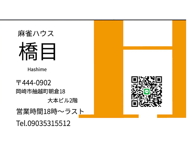 麻雀 橋目愛知県 マージャンハシメ 愛知県 北岡崎駅 徒歩15分 三麻、セット、フリー 電話する090-3531-5512 地図 店舗トップ ルール 写真/動画 イベント 求人 クーポン プロ イチオシ ランキング クチコミ 総合 麻雀 橋目 3.0 5 3 ? 点数について 3件 詳細 雀荘クチコミの点数概要 クチコミの点数は、総合点数を中心に、全部で11項目あります。 12項目は「雀荘の営業形態についての項目」と「その他の環境についての項目」の2つにわかれます。 総合スコア (計11項目) 営業形態点数 (6項目) 雀荘の営業形態についての点数 フリー セット 健康麻雀 麻雀教室 ノーレート 三麻 その他の環境点数 (5項目) 雀荘の設備、その他の環境についての点数 設備 接客 居心地 CP(コストパフォーマンス)・清潔感 ※麻雀王国雀荘検索のクチコミの点数は、当社独自の基準に基づく評価であり、雀荘の価値を何ら保証するものではあ りません。あくまでの一つの参考としてご活用ください。 雀荘クチコミ点数の算出方法要 クチコミの点数は、「ユーザー評価」に独自のアルゴリズムで掛け合わせて算出しております。 麻雀王国では、日々信頼性の高い点数を追及し、微調整を行っております。 ユーザー評価 個人が付けた点数 (雰囲気、感性、感覚、状況、主観など) フリー3.0 セット3.0 健康麻雀- 麻雀教室- ノーレート- 三麻3.0 設備 3.0 | 接客 3.0 | 居心地 3.0 | CP(コストパフォーマンス) 3.0 | 清潔感 3.0 フリー ¥500/般 セット ¥1,200/般 全国* 愛知県32位 【愛知県岡崎市・北岡崎駅】麻雀 橋目は、三麻・セット・フリーが楽しめる雀荘です。 ✨2024年6月新規オープン✨ 北岡崎駅徒歩15分さらに無料駐車場も完備でアクセス抜群!! 綺麗で落ち着いた雰囲気で麻雀を楽しめます。 新規のお客様は次回3ゲーム無料☆ お電話いただいた方には送迎も実施しております。 ご連絡お待ちしております。 アイコスの貸し出しも行っています。 是非皆様のご来店お待ちしております。 ・フリードリンク ・無料駐車場 ・スマホ携帯充電可 ・空気清浄機 続きを見る 閉じる お店のイチオシポイント イチオシ 1 送迎してます!!! お電話いただいたら送迎行っております。 ご相談ください! イチオシ 2 白ポッチ採用してます。 イチオシ 3 アイコスの貸し出ししてます。 お店のコトを友達に教える Facebook X(旧Twitter) Line Mail お店を評価する 閉店・休業・移転・情報違い報告 クチコミ投稿 報告内容詳細※必須 閉店 休業 移転 情報違い 送信する 最新情報 2025年11月14日(金) イベント 新規のお客様次回無料券プレゼント 3ゲーム無料券プレゼント 「ネット予約」&「チェックイン」で 来店人数×100Gもらえる! ログイン ご予約情報入力 来店日※ 2013年12月31日(火) 卓数※ 12345678910卓 予定開始※ 1:00 2:00 3:00 4:00 5:00 6:00 7:00 8:00 9:00 10:00 11:00 12:00 13:00 14:00 15:00 16:00 17:00 18:00 19:00 20:00 21:00 22:00 23:00 24:00 予定終了※ 1:00 2:00 3:00 4:00 5:00 6:00 7:00 8:00 9:00 10:00 11:00 12:00 13:00 14:00 15:00 16:00 17:00 18:00 19:00 20:00 21:00 22:00 23:00 24:00 お名前※ 携帯TEL※ メール※ ルール※ 四麻 三麻 点数※ 25000点 30000点 赤枚数※ 赤5マン01234 赤5ピン01234 赤5ソー01234 その他 チップ 焼鳥 備考 予約する クチコミ 投稿する 麻雀 橋目 愛知県 北岡崎駅 ここの塩焼きそばめちゃくちゃ美味しいです。アニキ 2025/04/22 (2025/04訪問) ゲスト さんのクチコミ 総合 5.0 麻雀 橋目 愛知県 北岡崎駅 三麻のルールも面白い。アニキ 2024/07/10 (2024/07訪問) ゲスト さんのクチコミ 総合 4.0 麻雀 橋目 愛知県 北岡崎駅 店員さんが面白い 2024/07/08 (2024/07訪問) ゲスト さんのクチコミ 総合 4.0 お店の情報詳細 店名 麻雀 橋目 住所 〒444-0902 [地図] 愛知県岡崎市舳越町朝倉18 大本ビル2階 電話 090-3531-5512 交通手段 愛知環状鉄道線 北岡崎駅 徒歩15分 営業時間 18:00~ラスト 定休日 不定休 営業内容 三麻、セット、フリー ゲーム代(フリー) ¥500/般 [三人麻雀/1回] ¥400/般 [三人麻雀/1回] ゲーム代(セット) ¥1,200/般 [別途フリードリンク300円] ゲーム代(健康麻雀) ゲーム代(麻雀教室) その他の料金 オープン日 2024年6月15日 初投稿者 ゲスト お店のサービス・システム・設備 総卓数 3卓 卓種 点数表示付全自動卓×3 サービス フリードリンク、パック料金、駐車場 システム・設備 PC、タブレット、スマホ、空気清浄機 備考 関連エリア・路線 愛知県の雀荘ランキング 北岡崎駅の雀荘ランキング 愛知県の雀荘特集 愛知県岡崎市の雀荘特集 北岡崎駅の雀荘特集 お店を利用する 電話する090-3531-5512 地図愛知県岡崎市舳越町朝倉18大本ビル2階 [ 管理者ページ ]
