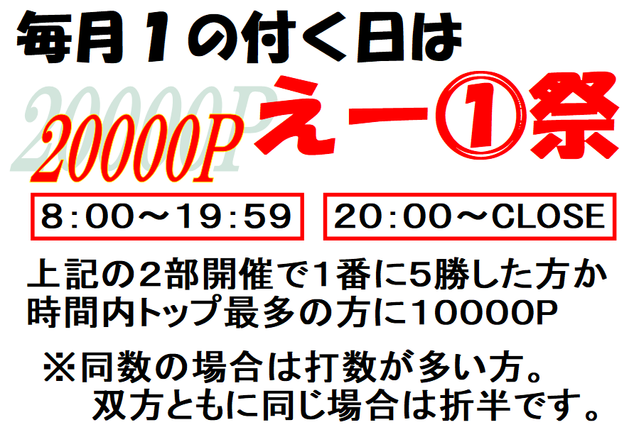 リーチ麻雀 A-1(エーワン)千葉県 リーチマージャン エーワン 千葉県 柏駅 徒歩1分 フリー、セット 電話する04-7144-4777 地図 店舗トップ ルール 写真/動画 イベント 求人 クーポン プロ イチオシ ランキング クチコミ 総合 リーチ麻雀 A-1(エーワン) 3.0 5 3 ? 点数について 3件 詳細 雀荘クチコミの点数概要 クチコミの点数は、総合点数を中心に、全部で11項目あります。 12項目は「雀荘の営業形態についての項目」と「その他の環境についての項目」の2つにわかれます。 総合スコア (計11項目) 営業形態点数 (6項目) 雀荘の営業形態についての点数 フリー セット 健康麻雀 麻雀教室 ノーレート 三麻 その他の環境点数 (5項目) 雀荘の設備、その他の環境についての点数 設備 接客 居心地 CP(コストパフォーマンス)・清潔感 ※麻雀王国雀荘検索のクチコミの点数は、当社独自の基準に基づく評価であり、雀荘の価値を何ら保証するものではあ りません。あくまでの一つの参考としてご活用ください。 雀荘クチコミ点数の算出方法要 クチコミの点数は、「ユーザー評価」に独自のアルゴリズムで掛け合わせて算出しております。 麻雀王国では、日々信頼性の高い点数を追及し、微調整を行っております。 ユーザー評価 個人が付けた点数 (雰囲気、感性、感覚、状況、主観など) フリー3.0 セット3.0 健康麻雀- 麻雀教室- ノーレート- 三麻- 設備 3.0 | 接客 3.0 | 居心地 3.0 | CP(コストパフォーマンス) 3.0 | 清潔感 3.0 フリー ¥600/般 セット ¥1,200/般 全国* 千葉県12位 【千葉県柏市・柏駅】リーチ麻雀 A-1(エーワン)は、フリー・セットが楽しめる雀荘です。 5月16日リニューアルOPEN!!! アモスレックスⅢ導入いたしました!! なんと9月11日に2台目のアモスレックスⅢ導入!! 空気をキレイに!!エアドッグを2台設置しています!! 新規のお客様は1ヶ月間ゲーム代半額で遊べます。 店内は明るくアットホームな雰囲気のお店です。 毎月1日、11日、21日、31日は⋯⋯イベント開催中!!! 他にもイベントやサービスが充実しております!! 皆様気軽に遊びに来てください。 続きを見る 閉じる お店のイチオシポイント イチオシ 1 毎月1の付く日は!! 1部8:00~19:59 2部20:00~CLOSE 上記2部開催5勝もしくは1番トップの多い方に10000P!!! イチオシ 2 30歳以下限定!! 月~木曜日の平日限定です!!! 祝日は対象外になります。 なんと1卓1時間500円!!! 飲み物は麦茶のみ!! アルコール類以外は持ち込みOK お店のコトを友達に教える Facebook X(旧Twitter) Line Mail お店を評価する 閉店・休業・移転・情報違い報告 クチコミ投稿 報告内容詳細※必須 閉店 休業 移転 情報違い 送信する 最新情報 2025年10月1日(水) イベント 新規様限定!! 2月21日~初来店から1か月間!! ゲーム代半額で遊べます!!! 通常600円のゲーム代がなんと300円!! お帰りの際に、差額を御渡し致します!! 「ネット予約」&「チェックイン」で 来店人数×100Gもらえる! ログイン ご予約情報入力 来店日※ 2013年12月31日(火) 卓数※ 12345678910卓 予定開始※ 1:00 2:00 3:00 4:00 5:00 6:00 7:00 8:00 9:00 10:00 11:00 12:00 13:00 14:00 15:00 16:00 17:00 18:00 19:00 20:00 21:00 22:00 23:00 24:00 予定終了※ 1:00 2:00 3:00 4:00 5:00 6:00 7:00 8:00 9:00 10:00 11:00 12:00 13:00 14:00 15:00 16:00 17:00 18:00 19:00 20:00 21:00 22:00 23:00 24:00 お名前※ 携帯TEL※ メール※ ルール※ 四麻 三麻 点数※ 25000点 30000点 赤枚数※ 赤5マン01234 赤5ピン01234 赤5ソー01234 その他 チップ 焼鳥 備考 予約する クチコミ 投稿する リーチ麻雀 A-1(エーワン) 千葉県 柏駅 凄く雰囲気がいい 2024/05/25 (2024/05訪問) ゲスト さんのクチコミ 総合 5.0 リーチ麻雀 A-1(エーワン) 千葉県 柏駅 食事が美味しい! 2016/06/16 (2016/06訪問) ゲスト さんのクチコミ 総合 5.0 リーチ麻雀 A-1(エーワン) 千葉県 柏駅 面白かった 2016/06/05 (2016/06訪問) ゲスト さんのクチコミ 総合 5.0 お店の情報詳細 店名 リーチ麻雀 A-1(エーワン) 住所 〒277-0852 [地図] 千葉県柏市旭町1丁目1-16 中崎ビル4F 電話 04-7144-4777 交通手段 JR常磐線(上野~取手) 柏駅 徒歩1分 JR常磐線(上野~取手) 南柏駅 2.43km JR常磐線(上野~取手) 北柏駅 2.22km 西口を出てまっすぐ進みドコモショップがある道を左折したところにございます。 営業時間 8:30~ラスト 定休日 年中無休 営業内容 フリー、セット ゲーム代(フリー) ¥600/般 [東南戦] ゲーム代(セット) ¥1,200/般 [1卓料金] ゲーム代(健康麻雀) ゲーム代(麻雀教室) その他の料金 オープン日 初投稿者 ゲスト お店のサービス・システム・設備 総卓数 6卓 卓種 全自動配牌卓×6 その他 [アモスレックスⅢ2台アルティマ4台] サービス フリードリンク、自動配牌卓 システム・設備 空気清浄機 備考 関連エリア・路線 千葉県の雀荘ランキング 柏駅の雀荘ランキング 南柏駅の雀荘ランキング 北柏駅の雀荘ランキング 千葉県の雀荘特集 千葉県柏市の雀荘特集 柏駅の雀荘特集 南柏駅の雀荘特集 北柏駅の雀荘特集 お店を利用する 電話する04-7144-4777 地図千葉県柏市旭町1丁目1-16中崎ビル4F [ 管理者ページ ]