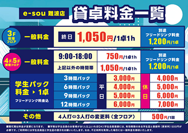 学割(フリー、貸卓)