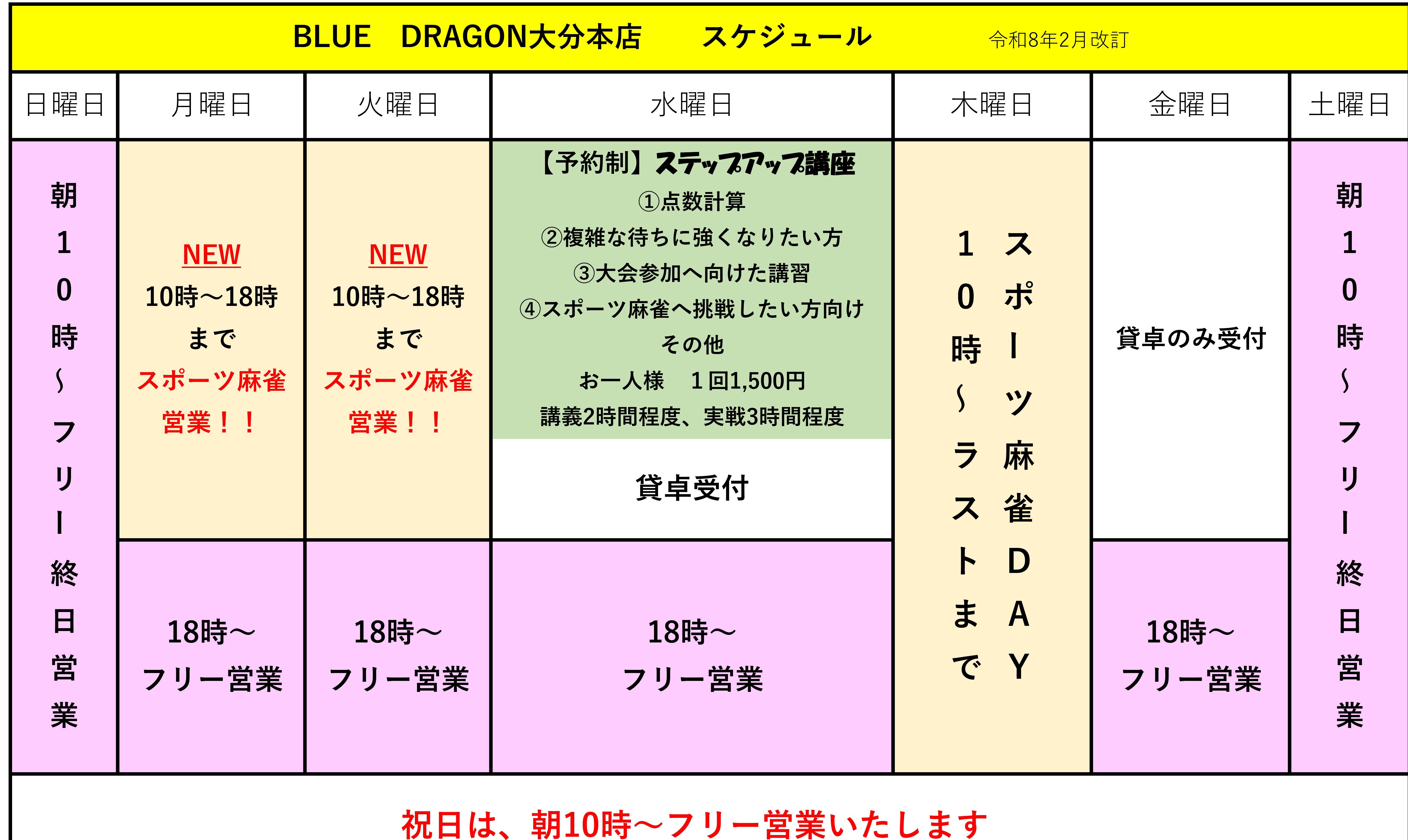 [健康マージャンの方は平日格安で受付しております。お問い合わせください。]