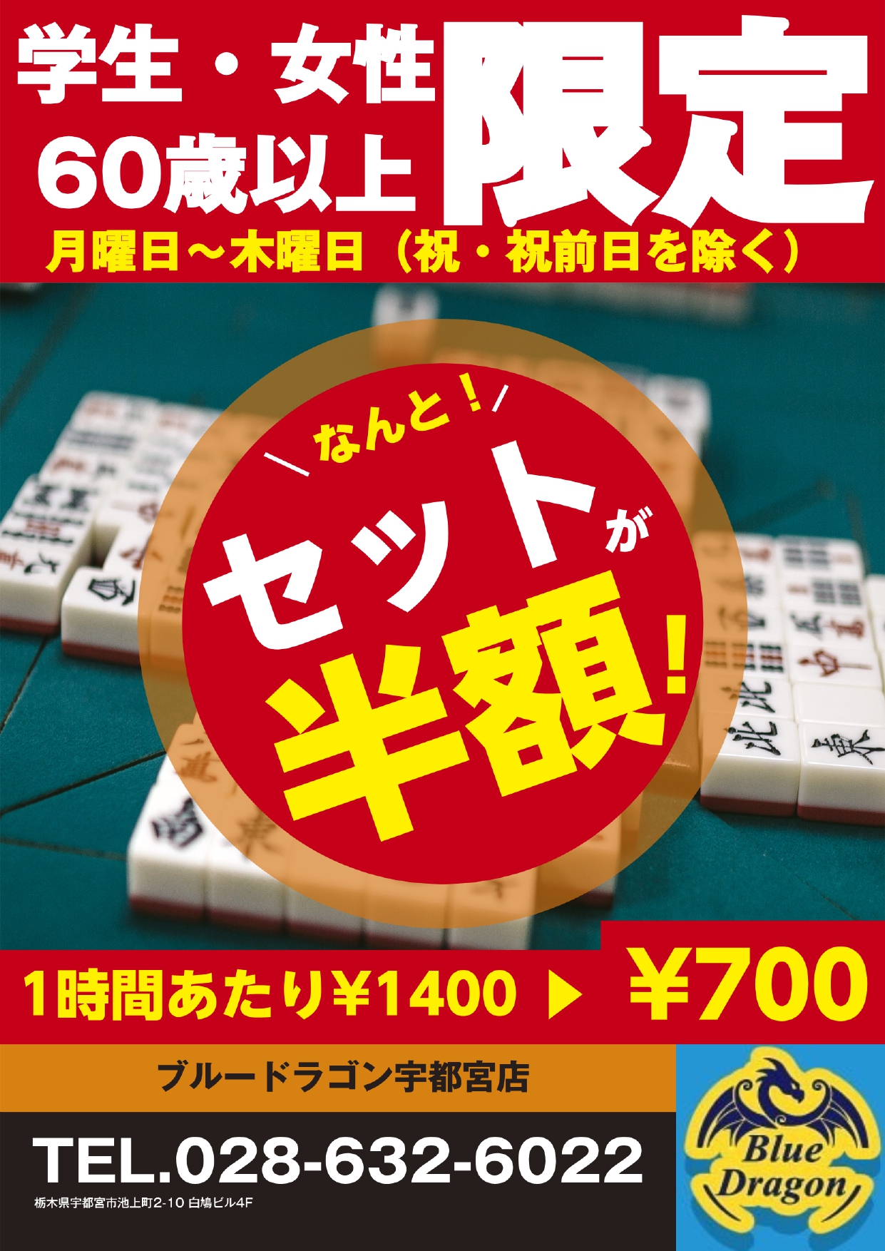 ブルードラゴン 宇都宮店栃木県 ブルードラゴン ウツノミヤテン 栃木県 東武宇都宮駅 徒歩3分 四麻、三麻、フリー、セット 電話する028-612-7565 地図 店舗トップ ルール 写真/動画 イベント 求人 クーポン プロ イチオシ ランキング クチコミ 総合 ブルードラゴン 宇都宮店 3.0 5 5 ? 点数について 5件 詳細 雀荘クチコミの点数概要 クチコミの点数は、総合点数を中心に、全部で11項目あります。 12項目は「雀荘の営業形態についての項目」と「その他の環境についての項目」の2つにわかれます。 総合スコア (計11項目) 営業形態点数 (6項目) 雀荘の営業形態についての点数 フリー セット 健康麻雀 麻雀教室 ノーレート 三麻 その他の環境点数 (5項目) 雀荘の設備、その他の環境についての点数 設備 接客 居心地 CP(コストパフォーマンス)・清潔感 ※麻雀王国雀荘検索のクチコミの点数は、当社独自の基準に基づく評価であり、雀荘の価値を何ら保証するものではあ りません。あくまでの一つの参考としてご活用ください。 雀荘クチコミ点数の算出方法要 クチコミの点数は、「ユーザー評価」に独自のアルゴリズムで掛け合わせて算出しております。 麻雀王国では、日々信頼性の高い点数を追及し、微調整を行っております。 ユーザー評価 個人が付けた点数 (雰囲気、感性、感覚、状況、主観など) フリー3.0 セット3.0 健康麻雀3.0 麻雀教室3.0 ノーレート3.0 三麻3.0 設備 3.0 | 接客 3.0 | 居心地 3.0 | CP(コストパフォーマンス) 3.0 | 清潔感 3.0 フリー ¥400/般 ブルードラゴングループ 長期契約安心店舗 全国* 栃木県2位 【栃木県宇都宮市・東武宇都宮駅】ブルードラゴン 宇都宮店は、四麻・三麻・フリー・セットが楽しめる雀荘です。 〘学生&女性はG代半額!〙 東武宇都宮駅より徒歩3分! プロ複数名在籍の初心者に優しいお店!フリーデビューの方にも優しく教えます! 聴牌連荘ルールでじっくり遊べます! フリー全卓レックスを採用中! 全国麻雀ランキング【麻雀の頂】加盟店です🐲 成績管理、ポイント等お得に遊んじゃいましょー✨️ 12月イベントも絶賛開催中!! 役満賞や連勝戦等、楽しいイベント盛りだくさんとなっています😆 続きを見る 閉じる お店のイチオシポイント イチオシ 1 学生、女性、シニアのセット半額キャンペーン 学生、女性、60歳以上のお客様のセットは通常1時間1400円のところ、終日半額の700円! お店のコトを友達に教える Facebook X(旧Twitter) Line Mail お店を評価する 閉店・休業・移転・情報違い報告 クチコミ投稿 報告内容詳細※必須 閉店 休業 移転 情報違い 送信する 最新情報 2025年8月1日(金) イベント WD ジャックポット!! 当店のオリジナル牌ホワイトドラゴン(白ポッチ)が 立直後一発ツモで裏ドラに顔を見せると・・・MEGAジャックポット! 一発でなくても裏ドラに顔を見せると・・・MINIジャックポット! 詳しくは当店で!! こんな熱いイベント他にはないのでジャックポット取っちゃうしかないですよ!! 「ネット予約」&「チェックイン」で 来店人数×100Gもらえる! ログイン ご予約情報入力 来店日※ 2013年12月31日(火) 卓数※ 12345678910卓 予定開始※ 1:00 2:00 3:00 4:00 5:00 6:00 7:00 8:00 9:00 10:00 11:00 12:00 13:00 14:00 15:00 16:00 17:00 18:00 19:00 20:00 21:00 22:00 23:00 24:00 予定終了※ 1:00 2:00 3:00 4:00 5:00 6:00 7:00 8:00 9:00 10:00 11:00 12:00 13:00 14:00 15:00 16:00 17:00 18:00 19:00 20:00 21:00 22:00 23:00 24:00 お名前※ 携帯TEL※ メール※ ルール※ 四麻 三麻 点数※ 25000点 30000点 赤枚数※ 赤5マン01234 赤5ピン01234 赤5ソー01234 その他 チップ 焼鳥 備考 予約する クチコミ 投稿する ブルードラゴン 宇都宮店 栃木県 東武宇都宮駅 スタッフの対応が丁寧で安心した 2025/09/21 (2025/09訪問) ゲスト さんのクチコミ 総合 5.0 ブルードラゴン 宇都宮店 栃木県 東武宇都宮駅 普通の良い雀荘、駐車場代サービスあって助かる、卓数多い、三麻はメンツ揃わないとダメ 2024/01/01 (2024/01訪問) ゲスト さんのクチコミ 総合 5.0 ブルードラゴン 宇都宮店 栃木県 東武宇都宮駅 メンバーさんも 優しいし 客層がみんな良いですよ 2021/09/25 (2021/09訪問) ゲスト さんのクチコミ 総合 5.0 お店独自のHP・ソーシャル X (旧twitter) お店の情報詳細 店名 ブルードラゴン 宇都宮店 住所 〒320-0801 [地図] 栃木県宇都宮市池上町2-4 白鳩ビル4階 電話 028-612-7565 交通手段 東武宇都宮線 東武宇都宮駅 徒歩3分 宇都宮線 宇都宮駅 徒歩15分 駅の西口を東武方面に真っ直ぐ進み、PARCOを左手に過ぎ、旧ワシントンホテルの前のビルの4Fにあります。 営業時間 10:00~24:00 定休日 年中無休 営業内容 四麻、三麻、フリー、セット ゲーム代(フリー) ¥400/般 [東南戦/1回] [学生と女性の方はG代半額です! ※学生の方は来店時に学生証のご提示をお願いします。 ] ¥300/般 [三人麻雀/1回] ゲーム代(セット) [平日1卓1時間1,400円(税別) 土日 1,600円(税別) 別途ソフトドリンク代として1名様毎に400円(税込) 年末年始も料金変わらず遊べます✨️ ご予約は早めにお願い致します🙇] ゲーム代(健康麻雀) ゲーム代(麻雀教室) その他の料金 学生、女性、60歳以上のお客様