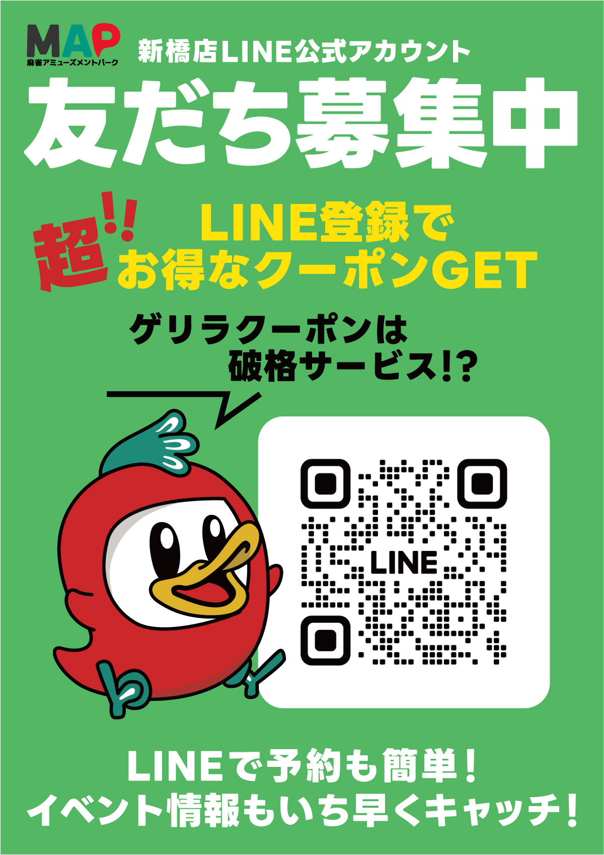 まぁじゃんMAP 新橋店東京都 マァジャンマップ シンバシテン 東京都 新橋駅 徒歩5分 セット 電話する03-6273-3600 地図 店舗トップ ルール 写真/動画 イベント 求人 クーポン プロ イチオシ ランキング クチコミ 総合 まぁじゃんMAP 新橋店 3.0 5 7 ? 点数について 7件 詳細 雀荘クチコミの点数概要 クチコミの点数は、総合点数を中心に、全部で11項目あります。 12項目は「雀荘の営業形態についての項目」と「その他の環境についての項目」の2つにわかれます。 総合スコア (計11項目) 営業形態点数 (6項目) 雀荘の営業形態についての点数 フリー セット 健康麻雀 麻雀教室 ノーレート 三麻 その他の環境点数 (5項目) 雀荘の設備、その他の環境についての点数 設備 接客 居心地 CP(コストパフォーマンス)・清潔感 ※麻雀王国雀荘検索のクチコミの点数は、当社独自の基準に基づく評価であり、雀荘の価値を何ら保証するものではあ りません。あくまでの一つの参考としてご活用ください。 雀荘クチコミ点数の算出方法要 クチコミの点数は、「ユーザー評価」に独自のアルゴリズムで掛け合わせて算出しております。 麻雀王国では、日々信頼性の高い点数を追及し、微調整を行っております。 ユーザー評価 個人が付けた点数 (雰囲気、感性、感覚、状況、主観など) フリー- セット3.0 健康麻雀- 麻雀教室- ノーレート- 三麻- 設備 3.0 | 接客 3.0 | 居心地 3.0 | CP(コストパフォーマンス) 3.0 | 清潔感 3.0 セット ¥450/般 MAPグループ 長期契約安心店舗 全国* 東京都* 【東京都港区・新橋駅】まぁじゃんMAP 新橋店は、セットが楽しめる雀荘です。 🚂 まぁじゃんMAP 新橋店 🚂 ⭐️ 完全個室あり(2卓) 接待・貸切大会対応可 ※個室料 ¥5,000/日 ✨ 土日祝パックが超お得! 👉 1卓 1h ¥1,100〜※パック適用後価格 🌈 新サービス ・3人麻雀:1卓 1h ¥1,400(パックあり) ⭐️平日限定お昼パック 10〜17時 最大7時間 ¥5,800(税別) ▶ ドリンク飲放題+カレー付き🍛 🍴 店内仕込みの手作り料理 🍺 アルコール飲み放題プランあり 💚 LINE公式アカウント配信中 定期&ゲリラクーポンが激アツ🔥 🪟 大きな窓で換気◎ 清潔な店内✨ 📞 ご予約・空き状況は電話 or LINEで! ★ 黒で統一された高級感ある綺麗な店内 ★ 内装工事済み・全卓最新アモスレックス導入 ★ 手作りの食事&豊富なドリンクをご用意 ★ 個室あり(2卓) 接待・貸切大会対応可 ※個室料 ¥5,000/日 ★ ホール全9卓(全卓 最新アルティマ卓) ★ お支払いは現金のみ 続きを見る 閉じる お店のイチオシポイント イチオシ 1 食事は全て店内手作り😳❣️ なんといっても!味自慢のご飯! 作りたてあつあつです♡ 🍻アルコール飲み放題プラン🍻も ぜひご利用下さい✨ イチオシ 2 完全個室完備💺 完全個室 接待やタバコが苦手な方、静かに麻雀を打ちたい方にオススメです。 最大2卓までご利用いただけます。 ※別途個室料かかります(¥5000/日) イチオシ 3 無料の会員登録でずーーーーっとお得✌️ ★会員登録制のお店★ 当店は会員登録制(登録無料)です。 お手持ちのフェリカカード(ICカード)が会員証に! お得なパックが会員様限定でご利用頂けます! ※登録は店舗にて承ります お店のコトを友達に教える Facebook X(旧Twitter) Line Mail お店を評価する 閉店・休業・移転・情報違い報告 クチコミ投稿 報告内容詳細※必須 閉店 休業 移転 情報違い 送信する 最新情報 2026年1月26日(月) イベント ⭐️ボトルウイスキーが仲間入り⭐️ 今までとは違うスタイルを取り入れたボトルウイスキー🥃 ウイスキー好きが選ぶおすすめのウイスキーを ・アメリカ ・スコットランド ・アイルランド ・カナダ ・日本 の5カ国から選出されました🎌 みんな違ってみんないい!! お気に入りの一品を見つけてみてください🚀⭐️ 「ネット予約」&「チェックイン」で 来店人数×100Gもらえる! ログイン ご予約情報入力 来店日※ 2013年12月31日(火) 卓数※ 12345678910卓 予定開始※ 1:00 2:00 3:00 4:00 5:00 6:00 7:00 8:00 9:00 10:00 11:00 12:00 13:00 14:00 15:00 16:00 17:00 18:00 19:00 20:00 21:00 22:00 23:00 24:00 予定終了※ 1:00 2:00 3:00 4:00 5:00 6:00 7:00 8:00 9:00 10:00 11:00 12:00 13:00 14:00 15:00 16:00 17:00 18:00 19:00 20:00 21:00 22:00 23:00 24:00 お名前※ 携帯TEL※ メール※ ルール※ 四麻 三麻 点数※ 25000点 30000点 赤枚数※ 赤5マン01234 赤5ピン01234 赤5ソー01234 その他 チップ 焼鳥 備考 予約する クチコミ 投稿する まぁじゃんMAP 新橋店 東京都 新橋駅 男性スタッフもいたが良いお店。土曜の予約が取り辛いのが難点かな。 LINEで予約できるのはいいね。 2023/06/21 (2023/06訪問) ゲスト さんのクチコミ 総合 5.0 まぁじゃんMAP 新橋店 東京都 新橋駅 接客良し、設備良し、値段良し、ご飯美味!最高のお店見つけました♪カードも使えるしリピート確定です! 2022/08/22 (2022/08訪問) ゲスト さんのクチコミ 総合 5.0 まぁじゃんMAP 新橋店 東京都 新橋駅 女性の従業員さんだけの雰囲気の良いセット店。とにかくご飯が美味しい! 2022/08/22 (2022/08訪問) ゲスト さんのクチコミ 総合 5.0 お店独自のHP・ソーシャル 自社HP 自社Blog お店の情報詳細 店
