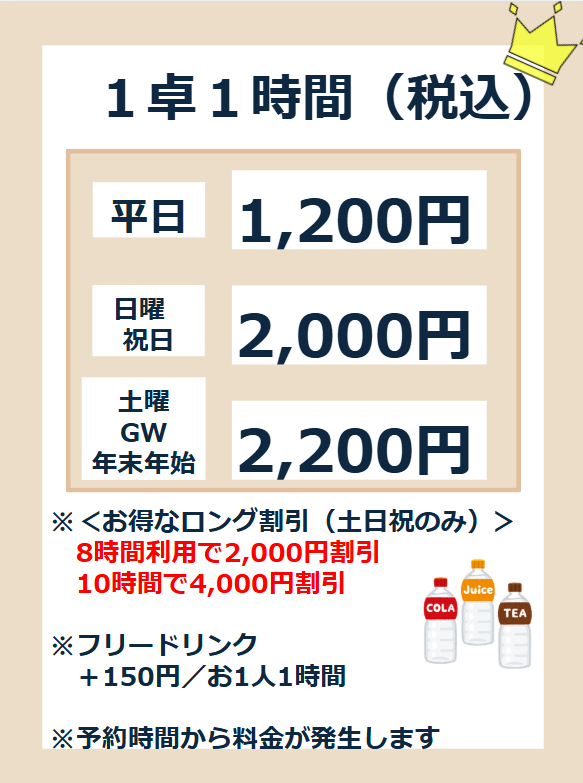 池袋★麻雀ひろば キングダム★東京都 イケブクロ マージャンヒロバ キングダム 東京都 池袋駅 徒歩1分 麻雀教室、セット 電話する03-6912-5397 地図 店舗トップ ルール 写真/動画 イベント 求人 クーポン プロ イチオシ ランキング クチコミ 総合 池袋★麻雀ひろば キングダム★ 3.0 5 9 ? 点数について 9件 詳細 雀荘クチコミの点数概要 クチコミの点数は、総合点数を中心に、全部で11項目あります。 12項目は「雀荘の営業形態についての項目」と「その他の環境についての項目」の2つにわかれます。 総合スコア (計11項目) 営業形態点数 (6項目) 雀荘の営業形態についての点数 フリー セット 健康麻雀 麻雀教室 ノーレート 三麻 その他の環境点数 (5項目) 雀荘の設備、その他の環境についての点数 設備 接客 居心地 CP(コストパフォーマンス)・清潔感 ※麻雀王国雀荘検索のクチコミの点数は、当社独自の基準に基づく評価であり、雀荘の価値を何ら保証するものではあ りません。あくまでの一つの参考としてご活用ください。 雀荘クチコミ点数の算出方法要 クチコミの点数は、「ユーザー評価」に独自のアルゴリズムで掛け合わせて算出しております。 麻雀王国では、日々信頼性の高い点数を追及し、微調整を行っております。 ユーザー評価 個人が付けた点数 (雰囲気、感性、感覚、状況、主観など) フリー3.0 セット3.0 健康麻雀3.0 麻雀教室- ノーレート3.0 三麻- 設備 3.0 | 接客 3.0 | 居心地 3.0 | CP(コストパフォーマンス) 3.0 | 清潔感 3.0 セット ¥400/般 長期契約安心店舗 全国* 東京都* 【東京都豊島区・池袋駅】池袋★麻雀ひろば キングダム★は、麻雀教室・セットが楽しめる雀荘です。 【池袋 西口駅前!ロータリー内です】 個室セット雀荘に生まれ変わりました👶👶✨✨ 店内禁煙(電子タバコのみOK・紙タバコは非常階段) アルコール飲み放題→3時間1人 2200円(お1人からOK・生ビール有)でやってます!!! 各種カード、交通系IC支払い可 *↓公式LINEメニューから日付を選択して一発予約 http://lin.ee/wDBAyUDT ✨三麻(特殊牌)・競技ルール 準備します ✨池袋駅前、カード可 続きを見る 閉じる お店のコトを友達に教える Facebook X(旧Twitter) Line Mail お店を評価する 閉店・休業・移転・情報違い報告 クチコミ投稿 報告内容詳細※必須 閉店 休業 移転 情報違い 送信する 最新情報 2026年3月30日(月) イベント 個室セット雀荘★池袋オープン★飲み放題も!! 池袋・個室セット雀荘リニューアルオープン! 西口駅前、スタッフ常時在住。全4部屋(TVモニター付き3部屋)。 8時間で2000円割引、10時間で4000円割引始めました。)🔥 お酒飲み放題 → 3時間2200円(生ビールも有り)🔥 長く打ちたい&飲みたい人はキングダムで👑 ご予約は公式LINEから LINE→http://lin.ee/wDBAyUDT 「ネット予約」&「チェックイン」で 来店人数×100Gもらえる! ログイン ご予約情報入力 来店日※ 2013年12月31日(火) 卓数※ 12345678910卓 予定開始※ 1:00 2:00 3:00 4:00 5:00 6:00 7:00 8:00 9:00 10:00 11:00 12:00 13:00 14:00 15:00 16:00 17:00 18:00 19:00 20:00 21:00 22:00 23:00 24:00 予定終了※ 1:00 2:00 3:00 4:00 5:00 6:00 7:00 8:00 9:00 10:00 11:00 12:00 13:00 14:00 15:00 16:00 17:00 18:00 19:00 20:00 21:00 22:00 23:00 24:00 お名前※ 携帯TEL※ メール※ ルール※ 四麻 三麻 点数※ 25000点 30000点 赤枚数※ 赤5マン01234 赤5ピン01234 赤5ソー01234 その他 チップ 焼鳥 備考 予約する クチコミ 投稿する 池袋★麻雀ひろば キングダム★ 東京都 池袋駅 池袋駅 西口駅前お店!! 2024/11/26 (2024/11訪問) ゲスト さんのクチコミ 総合 5.0 池袋★麻雀ひろば キングダム★ 東京都 池袋駅 ■駅前の個室セット雀荘■ 2024/11/26 (2024/11訪問) ゲスト さんのクチコミ 総合 5.0 池袋★麻雀ひろば キングダム★ 東京都 池袋駅 雰囲気好きです。 2019/05/16 (2019/05訪問) ゲスト さんのクチコミ 総合 5.0 お店独自のHP・ソーシャル X (旧twitter) 公式LINE 自社HP お店の情報詳細 店名 池袋★麻雀ひろば キングダム★ 住所 〒171-0021 [地図] 東京都豊島区西池袋1-20-6 広瀬ビル5F 電話 03-6912-5397 交通手段 JR山手線 池袋駅 徒歩1分 東京メトロ有楽町線 池袋駅 徒歩1分 東武東上線 池袋駅 徒歩1分 池袋駅西口 ロータリー内! ミスタードーナツの隣です。 営業時間 定休日 年中無休 営業内容 麻雀教室、セット ゲーム代(フリー) ゲーム代(セット) ¥400/般 [平日1200円(1部屋1時間・税込み) 日祝2000円(1部屋1時間・税込み) 土曜2200円(1部屋1時間・税込み) ※朝7時~ご予約OK ご予約は 公式LINE→http://lin.ee/wDBAyUDT もしくは お電話:03-6912-5397 ] ゲーム代(健康麻雀) ゲーム代(麻雀教室) その他の料金 オープン日 2023年4月14日 初投稿者 ゲスト お店のサービス・システム・設備 総卓数 4卓 卓種 点数表示付全自動卓×4全自動配牌卓×4 サービス フリードリンク、自動配牌卓、禁煙、ノーレート、女性スタッフ システム・設備 備考 関連エリア・路線 東京都の雀荘ランキング 池袋駅の雀荘ランキング 池袋駅の雀荘ランキング 池袋駅の雀荘ランキング 東京都の雀荘特集 東京都豊島区の雀荘特集 池袋駅の雀荘特集 池袋駅の雀荘特集 池袋駅の雀荘特集 お店を利用する 