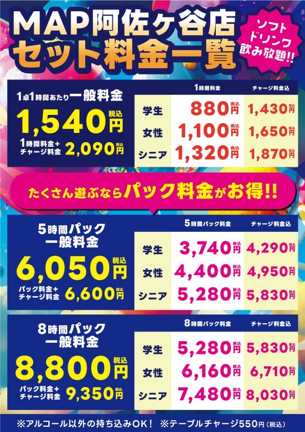 ◆平日限定打ち放題パック(チャージ料込み)※最大16時間
