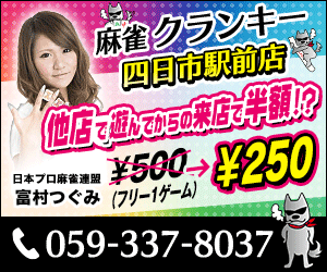 麻雀クランキー 四日市駅前店三重県 マージャンクランキー ヨッカイチエキマエテン 三重県 近鉄四日市駅 徒歩3分 四麻、フリー、セット 電話する059-337-8037 地図 店舗トップ ルール 写真/動画 イベント 求人 クーポン プロ イチオシ ランキング クチコミ 総合 麻雀クランキー 四日市駅前店 3.0 5 11 ? 点数について 11件 詳細 雀荘クチコミの点数概要 クチコミの点数は、総合点数を中心に、全部で11項目あります。 12項目は「雀荘の営業形態についての項目」と「その他の環境についての項目」の2つにわかれます。 総合スコア (計11項目) 営業形態点数 (6項目) 雀荘の営業形態についての点数 フリー セット 健康麻雀 麻雀教室 ノーレート 三麻 その他の環境点数 (5項目) 雀荘の設備、その他の環境についての点数 設備 接客 居心地 CP(コストパフォーマンス)・清潔感 ※麻雀王国雀荘検索のクチコミの点数は、当社独自の基準に基づく評価であり、雀荘の価値を何ら保証するものではあ りません。あくまでの一つの参考としてご活用ください。 雀荘クチコミ点数の算出方法要 クチコミの点数は、「ユーザー評価」に独自のアルゴリズムで掛け合わせて算出しております。 麻雀王国では、日々信頼性の高い点数を追及し、微調整を行っております。 ユーザー評価 個人が付けた点数 (雰囲気、感性、感覚、状況、主観など) フリー3.0 セット3.0 健康麻雀- 麻雀教室- ノーレート3.0 三麻- 設備 3.0 | 接客 3.0 | 居心地 3.0 | CP(コストパフォーマンス) 3.0 | 清潔感 3.0 フリー ¥500/般 セット ¥275/般 長期契約安心店舗 全国* 三重県5位 【三重県四日市市・近鉄四日市駅】麻雀クランキー 四日市駅前店は、四麻・フリー・セットが楽しめる雀荘です。 2026年1月より麻雀クランキー/KUROとして新たなスタート★近鉄四日市駅から徒歩3分★マーチャオジョーカー四日市店様から徒歩1分★4人打フリー&個室貸卓 ★近鉄四日市駅から徒歩3分 ★マーチャオジョーカー四日市店様から徒歩1分 ★4人打フリー&個室貸卓 ★無料専用駐車場8台 ★コインパーキング代サービス有 ★TEL: 059-337-8037 ★4人打フリー 1ゲーム500円➡250円 ①遊べば遊ぶほどゲーム代が安くなります!!最大半額に!! ②当日他店で遊んでからご来店頂く場合でも、ゲーム代が安くなります!! ★貸卓 20%OFFクーポン配布中!! ※個室は10%OFF ※ご予約の場合、朝9:00からご利用OK!! 続きを見る 閉じる お店のイチオシポイント イチオシ 1 新しくなった麻雀クランキー!! 近鉄四日市駅前で2番目に愛されるお店を目指し、2026年1月に麻雀クランキー/KUROとして新たなスタートを切りました!! ↓詳しくはブログをご覧ください https://ameblo.jp/mahjong-cranky/entry-12953660448.html イチオシ 2 最大半額になる割引システム!! ★4人打フリー 1ゲーム500円➡250円 ①遊べば遊ぶほどゲーム代が安くなります!! 最大半額に!! ②当日他店で遊んでからご来店頂く場合でも、 ゲーム代が安くなります!! ↓詳しくはブログをご覧ください https://ameblo.jp/mahjong-cranky/entry-12954483867.html イチオシ 3 貸卓がず~っと20%OFF!! 貸卓がず~っと20%OFFになるパスポート配布中!! ※個室は10%OFF お店のコトを友達に教える Facebook X(旧Twitter) Line Mail お店を評価する 閉店・休業・移転・情報違い報告 クチコミ投稿 報告内容詳細※必須 閉店 休業 移転 情報違い 送信する 最新情報 2026年1月26日(月) イベント 貸卓がず~っと20%OFF!! 貸卓がず~っと20%OFFになるパスポート配布中!! ※個室は10%OFF 「ネット予約」&「チェックイン」で 来店人数×100Gもらえる! ログイン ご予約情報入力 来店日※ 2013年12月31日(火) 卓数※ 12345678910卓 予定開始※ 1:00 2:00 3:00 4:00 5:00 6:00 7:00 8:00 9:00 10:00 11:00 12:00 13:00 14:00 15:00 16:00 17:00 18:00 19:00 20:00 21:00 22:00 23:00 24:00 予定終了※ 1:00 2:00 3:00 4:00 5:00 6:00 7:00 8:00 9:00 10:00 11:00 12:00 13:00 14:00 15:00 16:00 17:00 18:00 19:00 20:00 21:00 22:00 23:00 24:00 お名前※ 携帯TEL※ メール※ ルール※ 四麻 三麻 点数※ 25000点 30000点 赤枚数※ 赤5マン01234 赤5ピン01234 赤5ソー01234 その他 チップ 焼鳥 備考 予約する クチコミ 投稿する 麻雀クランキー 四日市駅前店 三重県 近鉄四日市駅 綺麗な店内で快適に打てました 2025/07/14 (2025/07訪問) ゲスト さんのクチコミ 総合 5.0 麻雀クランキー 四日市駅前店 三重県 近鉄四日市駅 店が綺麗、接客も良い。フリーも貸卓も料金が安い。フリーは多分日本でも有数なお得さ。 2024/04/05 (2024/04訪問) ゲスト さんのクチコミ 総合 5.0 麻雀クランキー 四日市駅前店 三重県 近鉄四日市駅 店内がとても綺麗で居心地もよく快適に利用させていただきましたスタッフも元気で明るく接しやすかったです 2020/01/07 (2020/01訪問) ゲスト さんのクチコミ 総合 5.0 お店独自のHP・ソーシャル X (旧twitter) 自社HP 自社Blog お店の情報詳細 店名 麻雀クランキー 四日市駅前店 住所 〒510-0086 [地図] 三重県四日市市諏訪栄町3-4 エルビル3F 電話 059-337-8037 交通手段 近鉄名古屋線 近鉄四日市駅 徒歩3分 近鉄湯の山線 近鉄四日市駅 263m JR関西本線(名古屋~亀山) 四日市駅 913m 近鉄四日市駅北口から東へ(右手方向)250mの