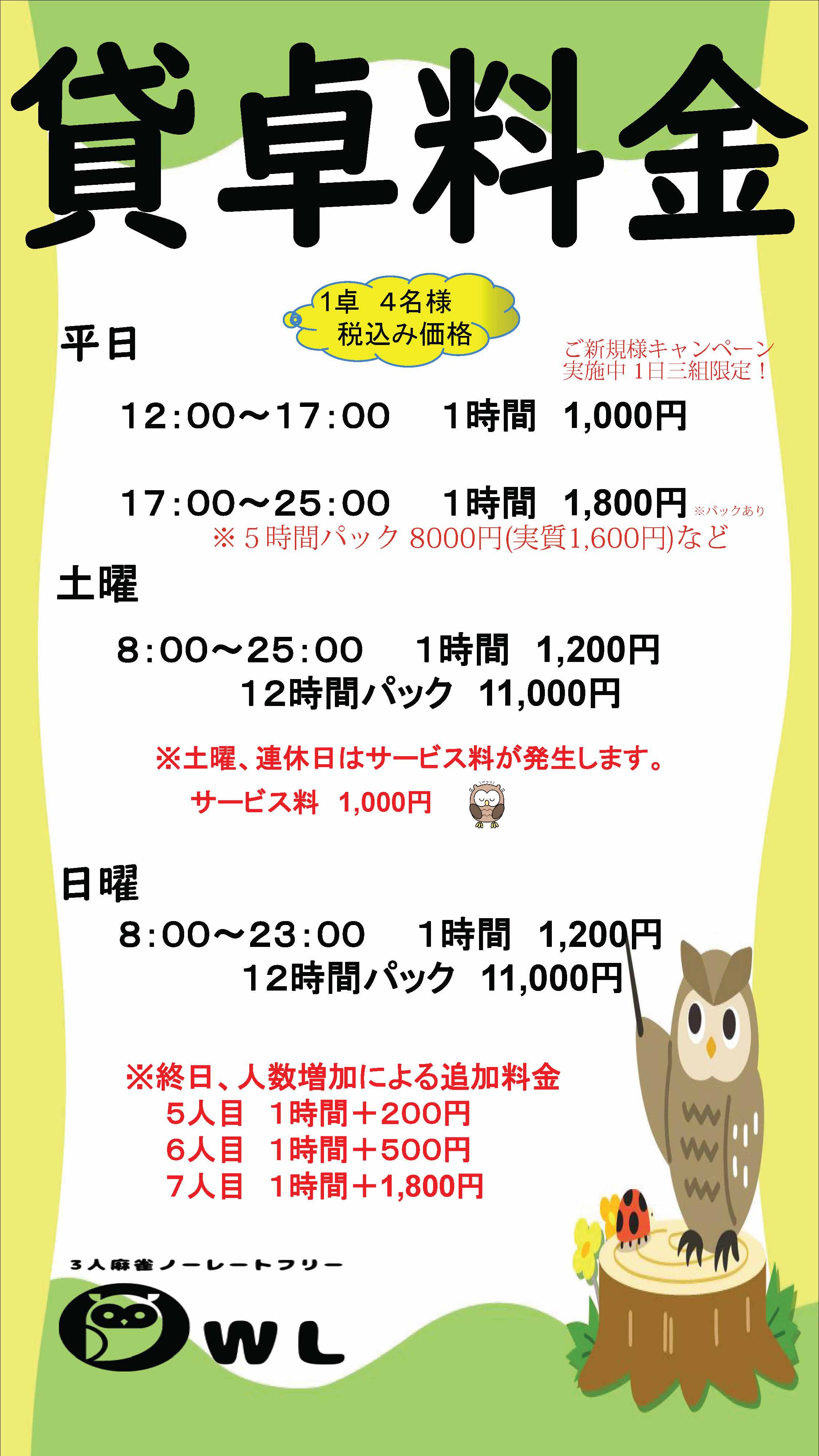 [・終日ノーレート(3ゲームあたり1000円を頂戴しております)